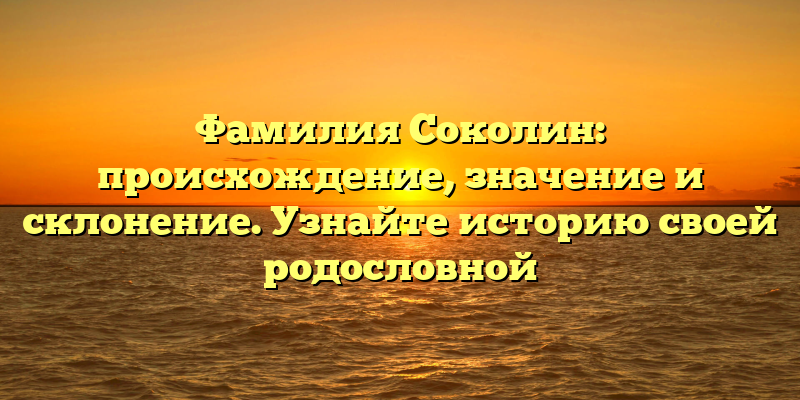 - Раскрываем тайны фамилии Соколин: происхождение, значение и правильное склонение. Готовы узнать свою настоящую родословную?