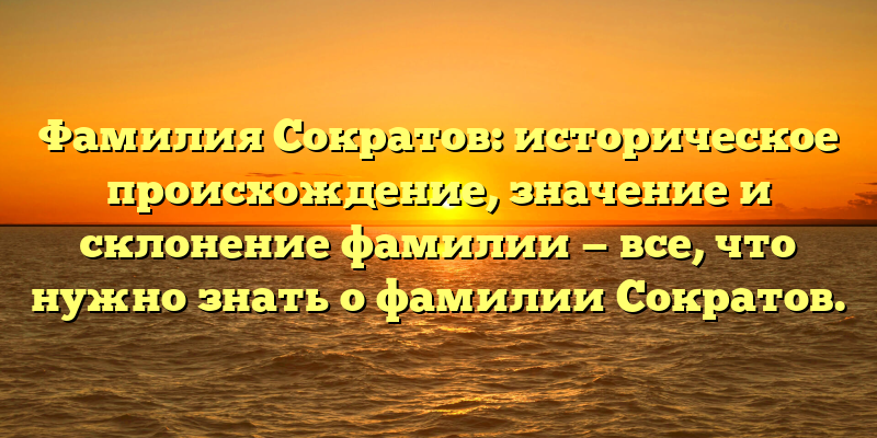 Расшифровываем фамилию Сократов: история, значение и склонение — вся необходимая информация в одной статье.