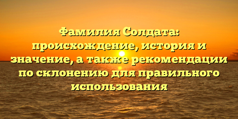 - Фамилия Солдата: исследование происхождения и истории, полезные советы по склонению для безошибочного использования