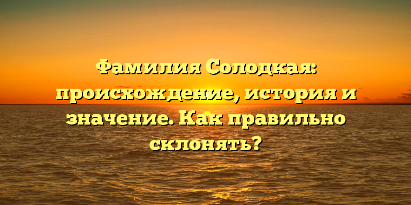 - Фамилия Солодкая: происхождение, история и правила склонения в русском языке