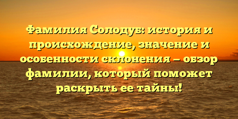 - Фамилия Солодуб: открытие тайн происхождения и склонения в обзоре!