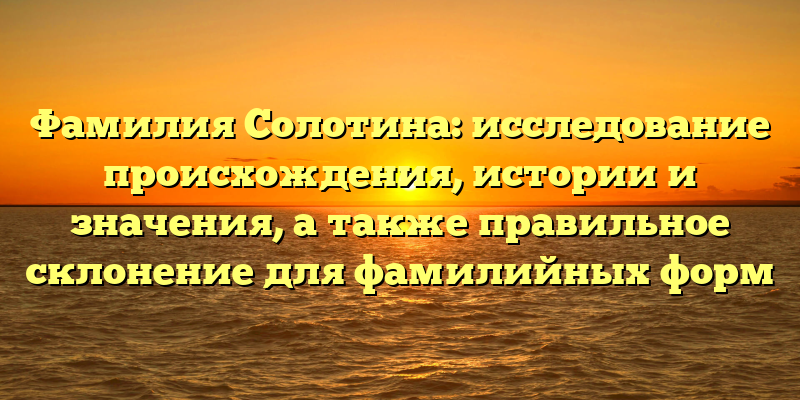 - Фамилия Солотина: исследование происхождения, истории и значения, а также секреты правильного склонения