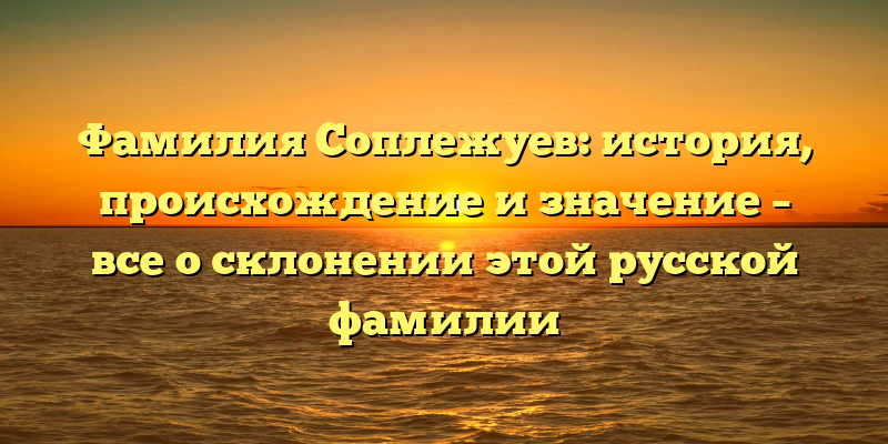 - Фамилия Соплежуев: происхождение и значение, склонение и история — всё, что стоит знать об этой русской фамилии.