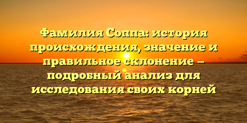 - Узнайте происхождение, значения и правильное склонение фамилии Соппа — исследуйте свои корни вместе с нами!