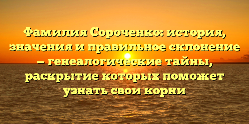 - Откройте генеалогические тайны: история, значения и правильное склонение фамилии Сороченко — узнайте свои корни сегодня!