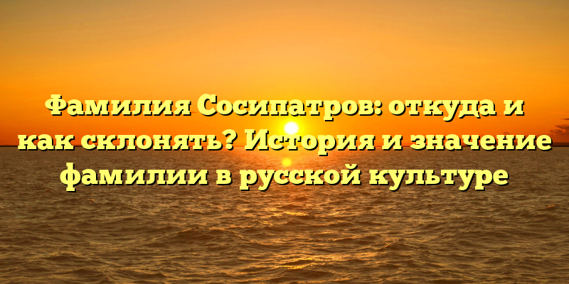 - История и значение фамилии Сосипатров: как правильно ее склонять и что она означает в русской культуре