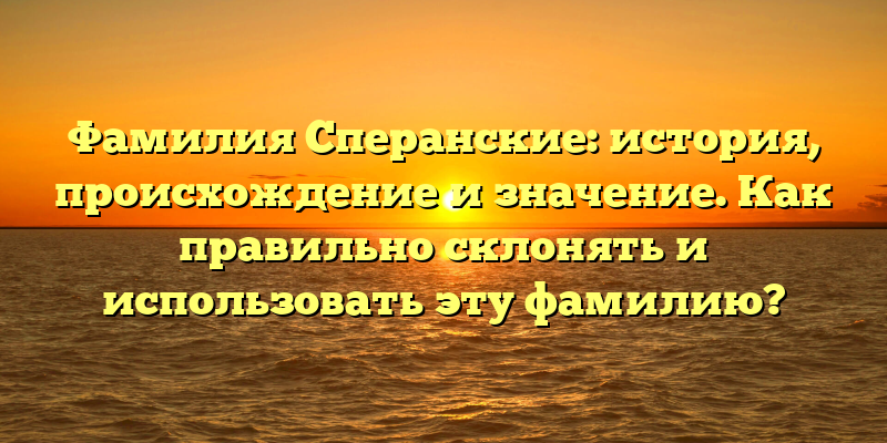 Изучаем фамилию Сперанские: история, происхождение и правила употребления