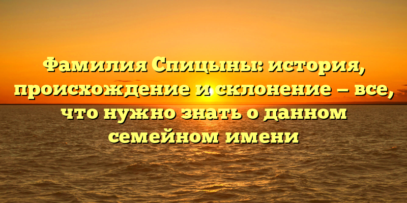 - Фамилия Спицыны: происхождение, история и склонение — полное руководство по изучению этого семейного имени