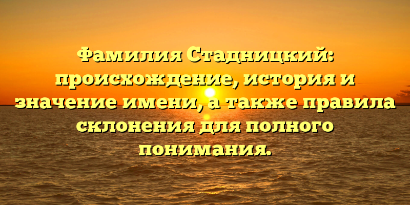 - Раскрываем тайны фамилии Стадницкий: история, происхождение и значимость имени с правилами склонения.