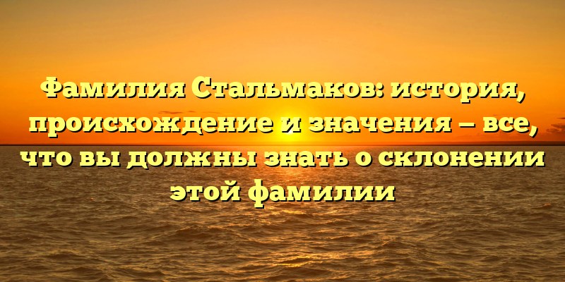 - Фамилия Стальмаков: происхождение, история и значения — полный гид по склонению этой фамилии для всех интересующихся