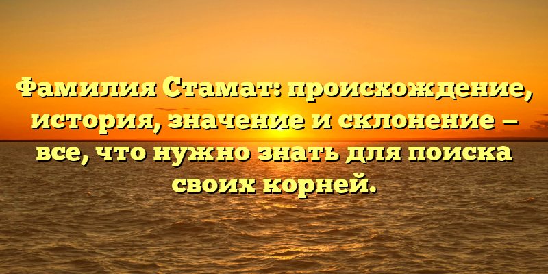 - Фамилия Стамат: история происхождения, значения и склонения для поиска своих генеалогических корней
