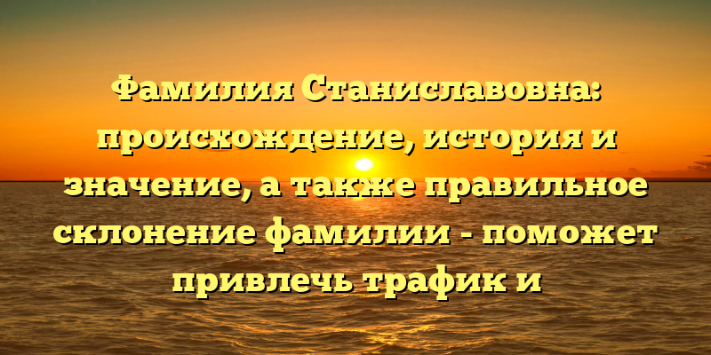 Ищете информацию о своей фамилии? Узнайте о происхождении и значении Станиславовной и других фамилий на нашем сайте!