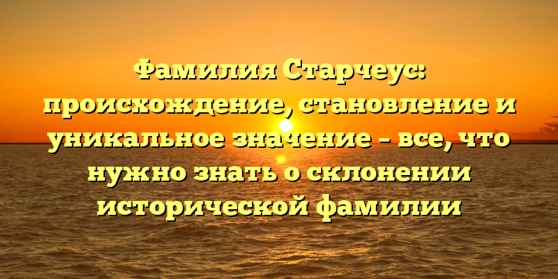 Фамилия Старчеус: история происхождения, становления и особенности употребления в современном мире