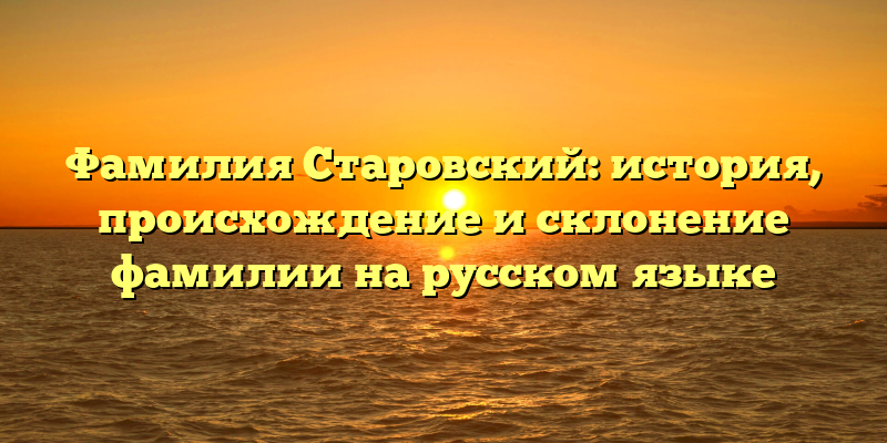 Старовский — одна из достаточно распространенных фамилий в России. Ее происхождение несколько загадочно и до конца не исследовано. Однако, есть несколько версий происхождения этой фамилии. В данной статье мы рассмотрим историю, происхождение и порядок склонения фамилии старовский на русском языке.