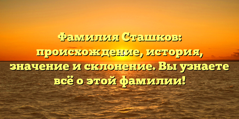 - Фамилия Сташков: происхождение, история и значение — полный гид с правильным склонением.