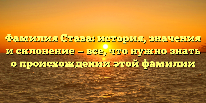 - Фамилия Става: происхождение, значения и склонение — исследуем историю нашей фамилии!