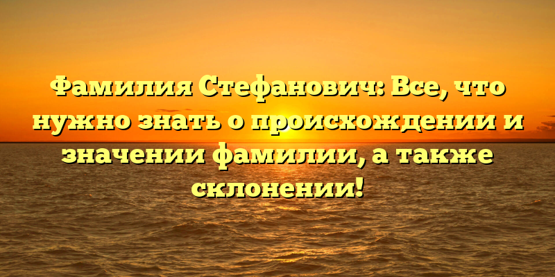 Фамилия Стефанович встречается довольно редко, но тем не менее вызывает интерес у тех, кто хочет знать больше о происхождении своей фамилии. Если вы тоже хотите узнать о происхождении и значении фамилии Стефанович, а также о ее склонении, то эта статья для вас.