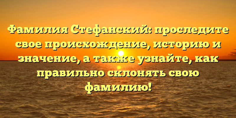 - Исследуйте свои корни: всё о происхождении и значении фамилии Стефанский, а также советы по склонению!