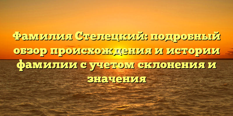 - Фамилия Стелецкий: история происхождения, значения и правильное склонение — всё, что нужно знать!