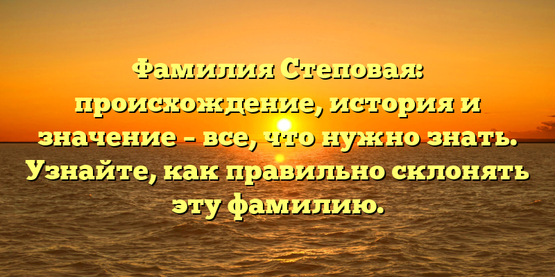 - Фамилия Степовая: происхождение, история и значение — полный гид по склонению и правилам использования