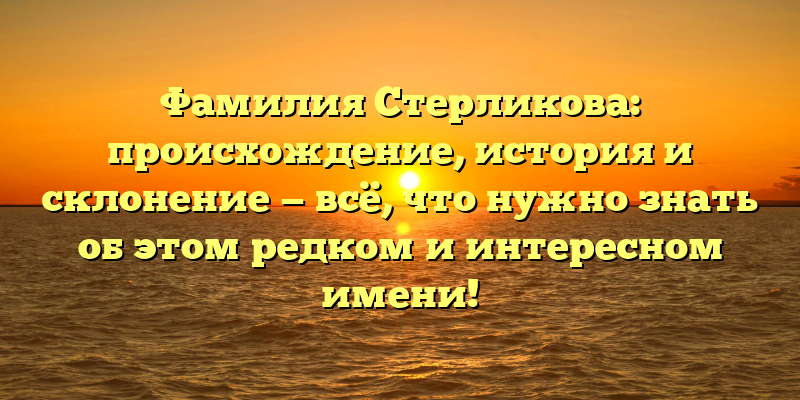 - Фамилия Стерликова: происхождение, история и склонение — полное руководство для любопытных и генеалогов!