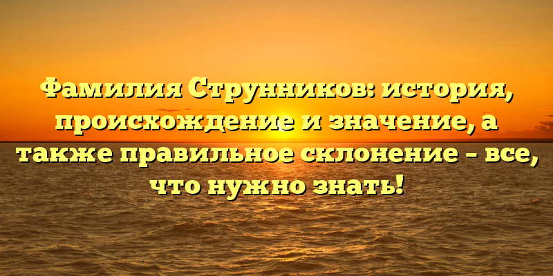 - Фамилия Струнников: интересные факты о происхождении и значении, а также секреты правильного склонения для вашей фамилии!