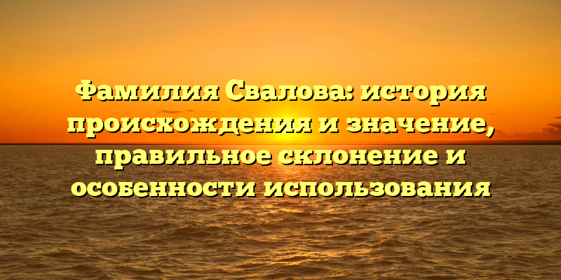 - Фамилия Свалова: история, происхождение и использование, полное руководство по правильному склонению