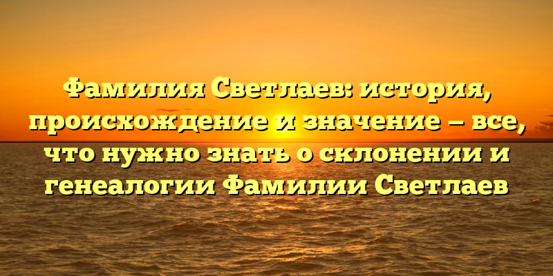 - Фамилия Светлаев: исследование происхождения и генеалогии для тех, кто хочет узнать больше о своих предках и корнях