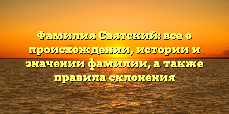 - Фамилия Святский: происхождение, история и правила склонения — всё что нужно знать!