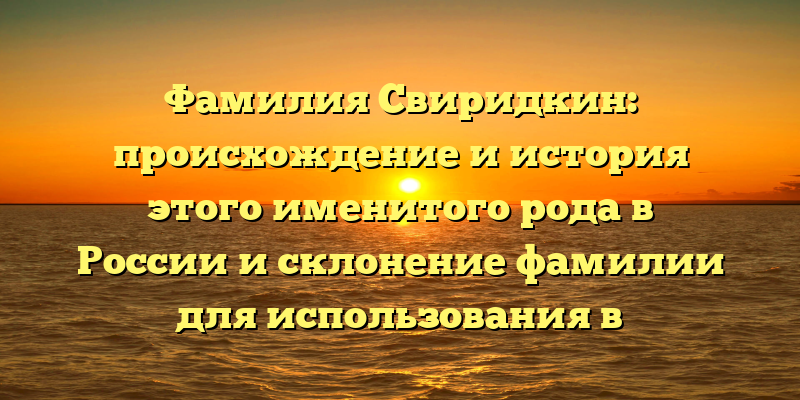 - Фамилия Свиридкин: история происхождения и правильное склонение для использования в России