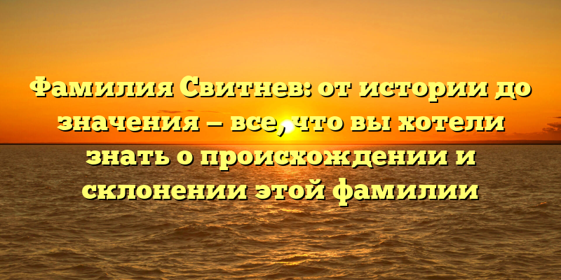 От истории до значения: рассказываем о происхождении и склонении фамилии Свитнев