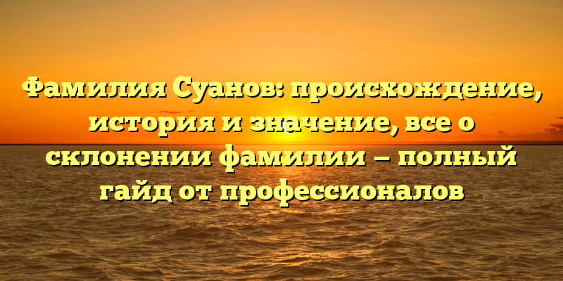 Откройте тайны своей фамилии Суанов: исследуйте ее происхождение и историю, а также узнайте все о склонении в нашем полном гайде от экспертов по генеалогии.