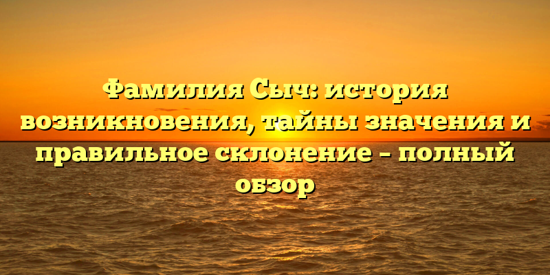 - Фамилия Сыч: происхождение и значение, склонение и интересные факты в полном обзоре