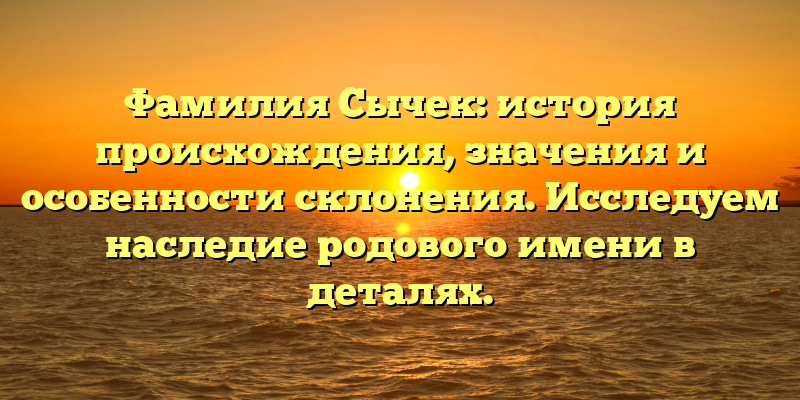 - Раскрываем тайны фамилии Сычек: история, значения и склонения имени. Узнайте всё о родовом наследии этой уникальной фамилии!