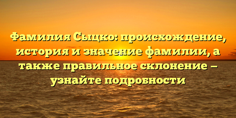 - Фамилия Сыцко: происхождение и значение, история и правильное склонение — узнайте все детали