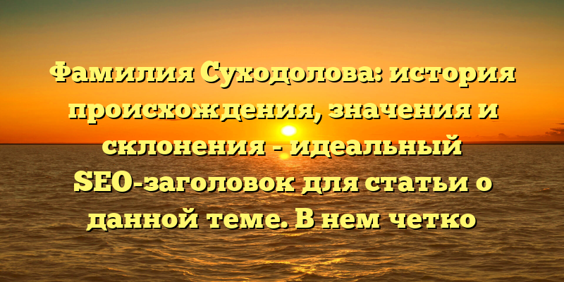 - Фамилия Суходолова: история и значения, как правильно склонять — оптимальный SEO-заголовок для статьи об исследовании и происхождении фамилии Суходолова.