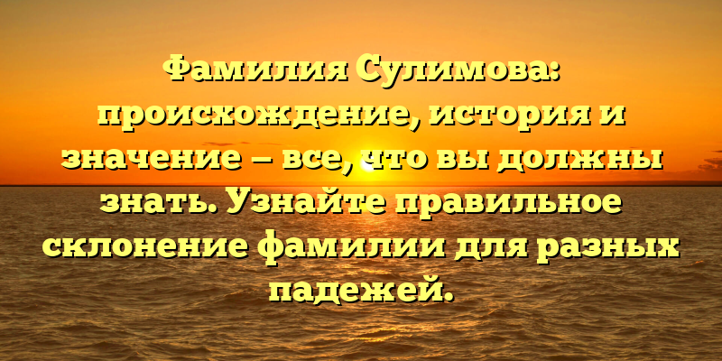 - Знакомьтесь с историей и происхождением фамилии Сулимова и узнайте, как правильно склонять ее в разных падежах
