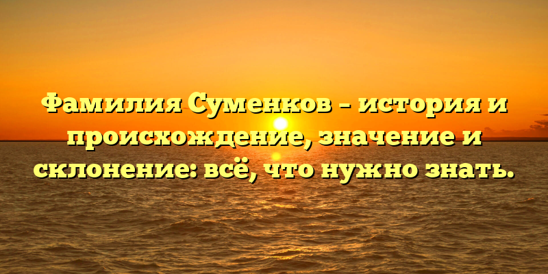 - Фамилия Суменков: исследуем истоки, значения и склонение этого именитого рода
