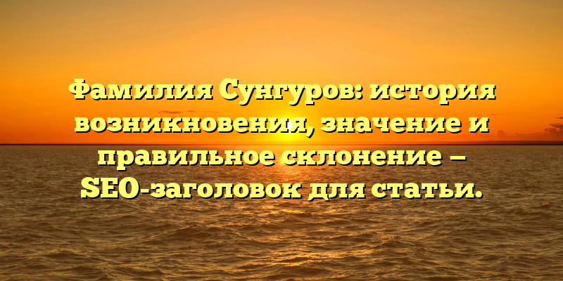 - Фамилия Сунгуров: происхождение, значение и правильное склонение — все, что нужно знать — SEO-заголовок для статьи.