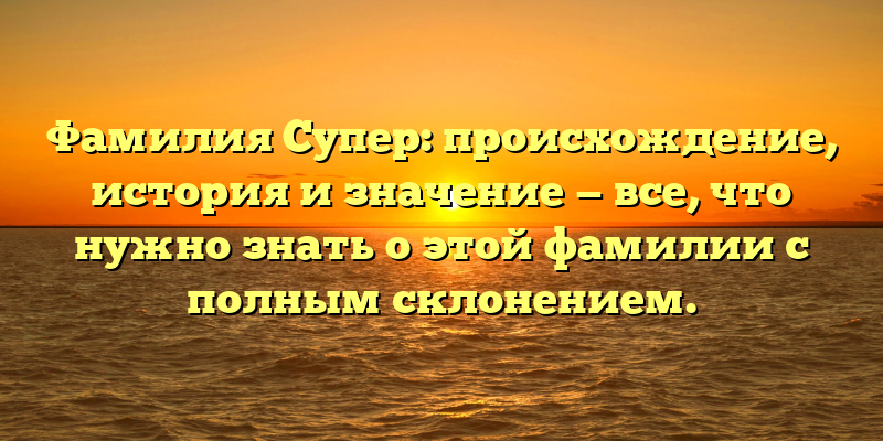 Откройте тайны фамилии Супер: происхождение, история и значение с полным склонением в нашей статье!