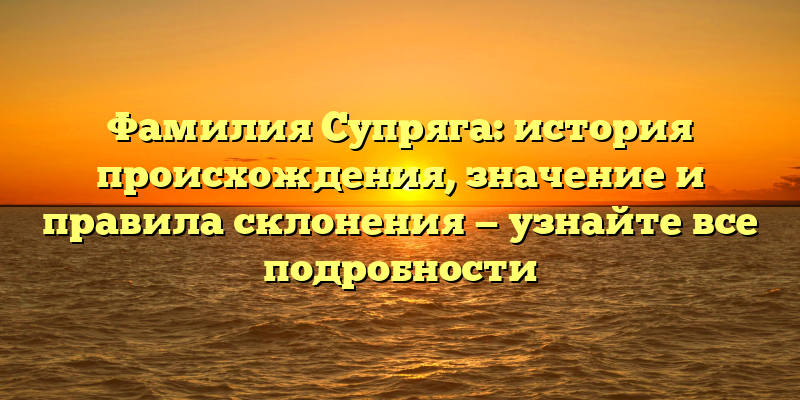 - Фамилия Супряга: происхождение, значение и правила склонения — полный гид для исследования родовой истории
