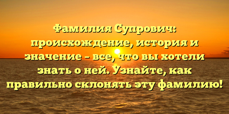 - Фамилия Супрович: происхождение, история и значение. Как правильно склонять и все, что вы хотели о ней знать!