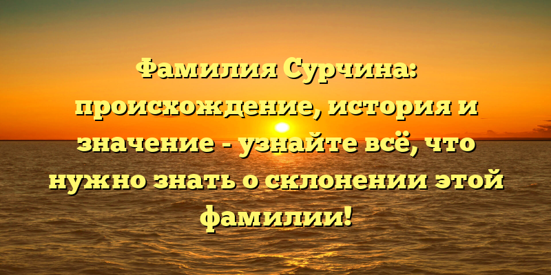 - Раскрываем тайны фамилии Сурчина: происхождение, история и склонение — всё, что вам нужно знать!