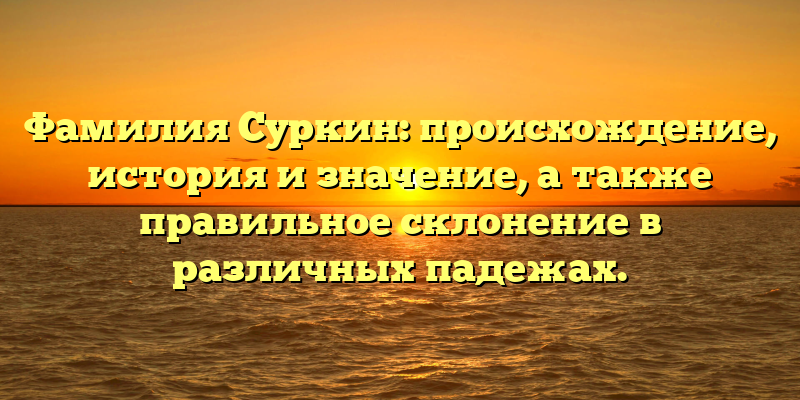В данной статье мы рассмотрим происхождение, историю и значение фамилии Суркин, а также правильное склонение в различных падежах. Эта информация может оказаться полезной для тех, кто интересуется своими корнями и хочет более глубоко изучить свою фамилию.