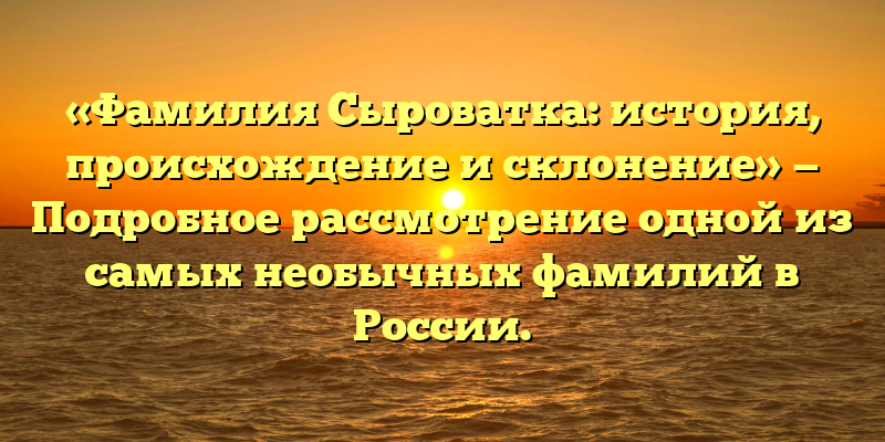 «Фамилия Сыроватка: происхождение, история и склонение – все, что нужно знать о необычной фамилии в России»