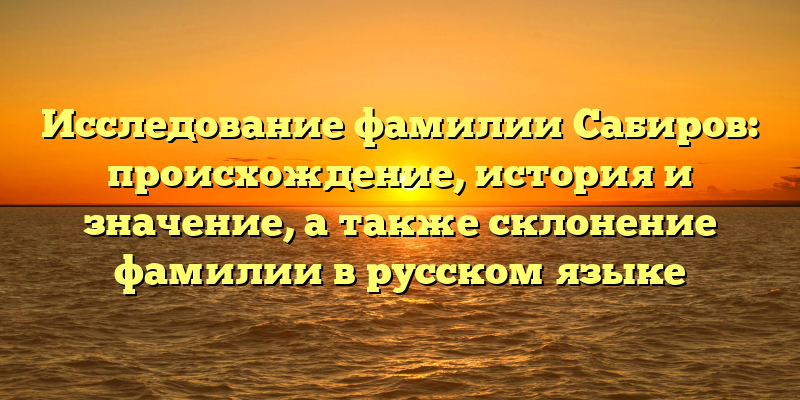 - Раскрываем тайны фамилии Сабиров: происхождение, история и склонение в русском языке