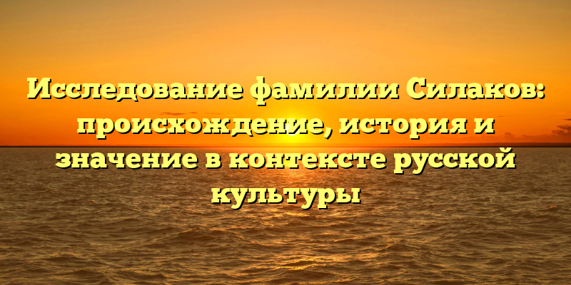Исследование фамилии Силаков: погружение в историю и значения российского наследия