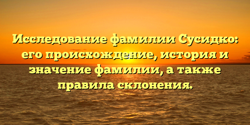 Исследование фамилии Сусидко: происхождение, история и значение, а также правила склонения – все, что нужно знать о вашей фамилии