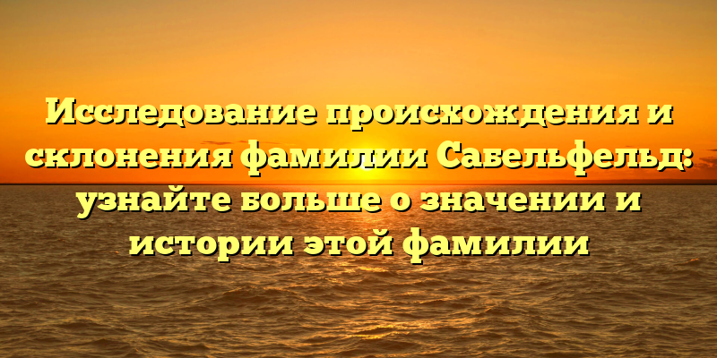 «Откройте тайны происхождения фамилии Сабельфельд: узнайте о ее значении и интересных фактах»