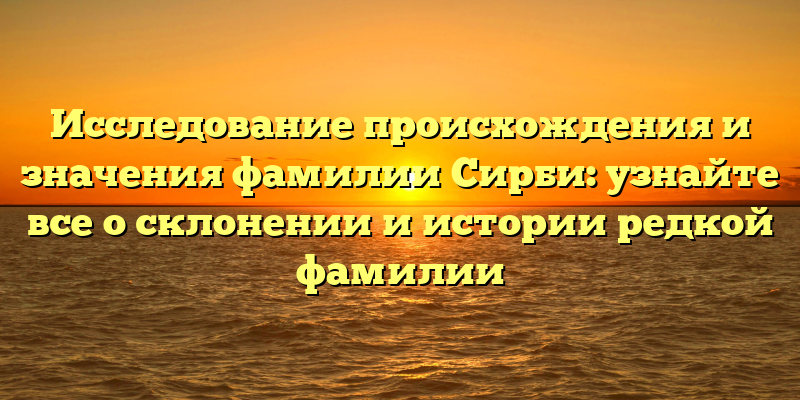 Исследование происхождения и значения фамилии Сирби: узнайте все о склонении и интересной истории этой уникальной фамилии
